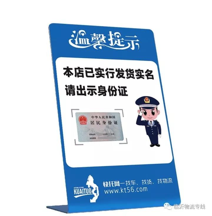 快托网特制作一批温馨提示牌,免费发放给物流企业,帮助物流企业宣传收发货实名!